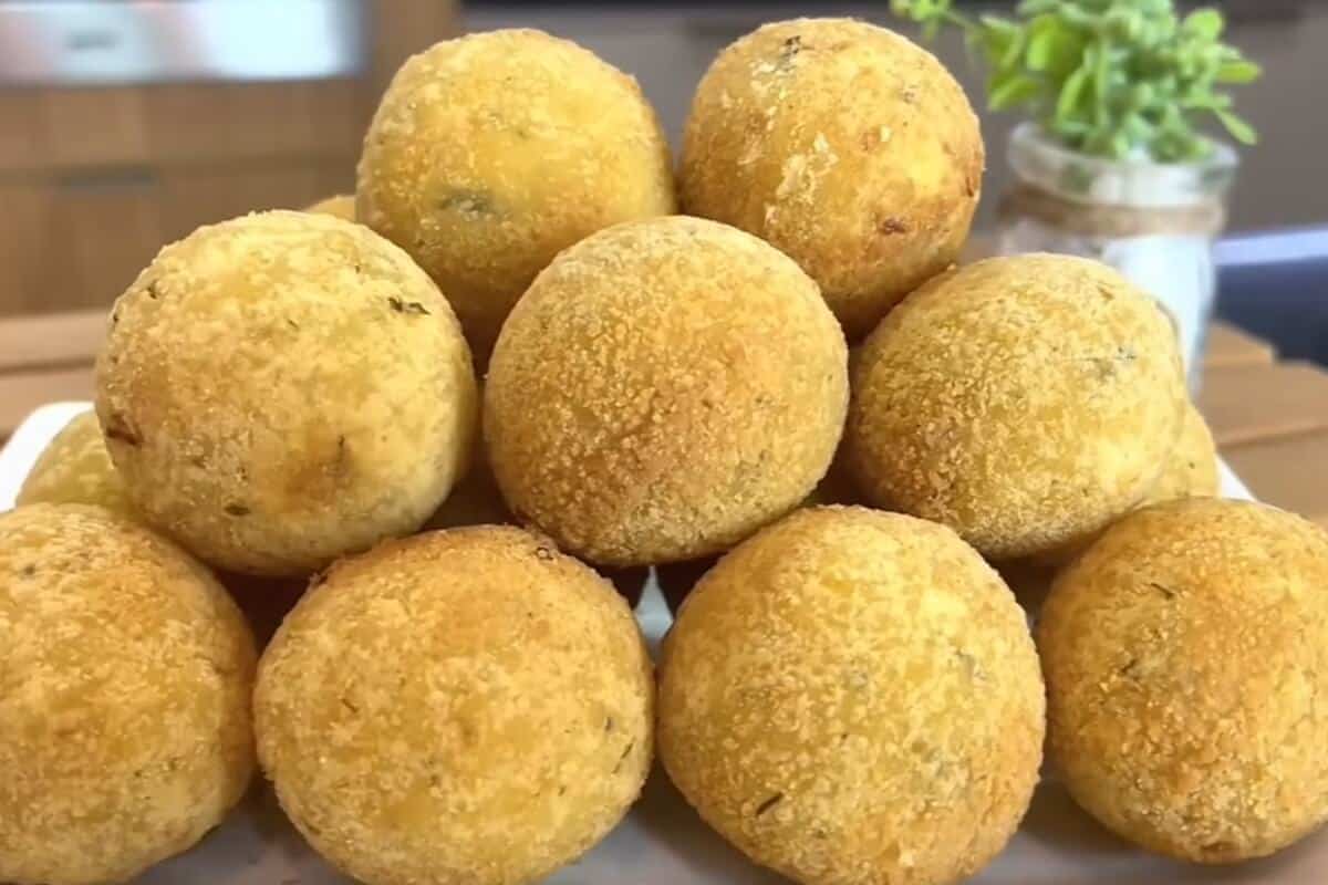 Dica adicional: Se desejar congelar, coloque alguns bolinhos já empanados numa vasilha com tampa e armazene no congelador, retirando um pouco antes do momento de fritar.