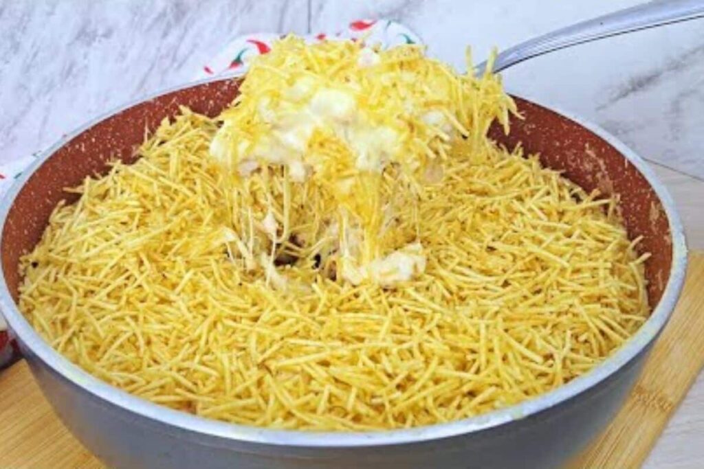 Fricassê de linguiça cremoso e delicioso preparado em uma só panela sem bagunça