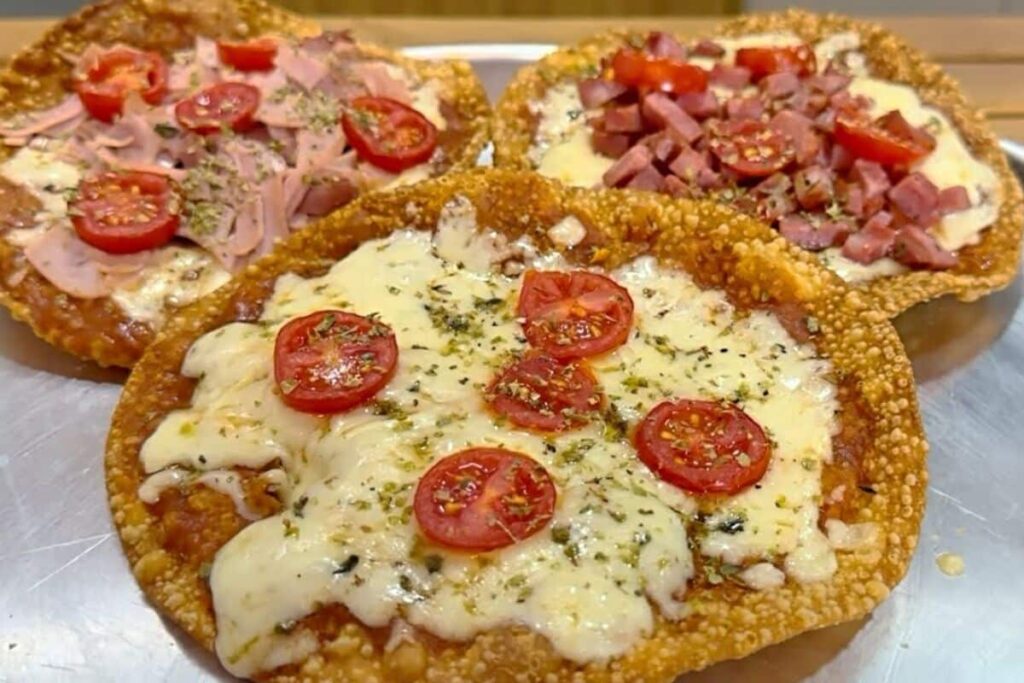 Lanche com massa de pastel simples e delicioso pronto em poucos minutos